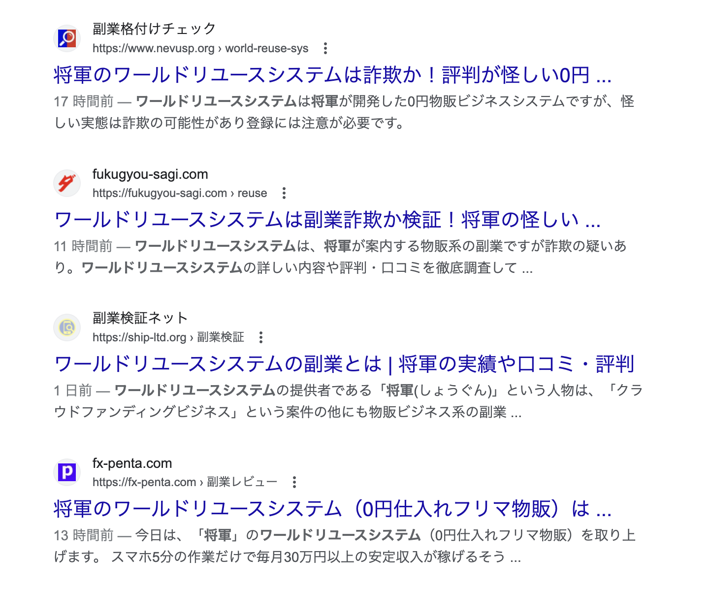 ここまで解説してきたことも踏まえて、将軍さんが手がけるワールドリユースシステムのネット上の口コミと評判を調べてみましたが案の定
