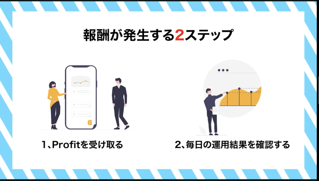 まず、Profitの内容についてですが、SNSやYoutubeで流れる内容は魅力的に感じるかもしれませんが、実際には口座開設するだけで毎日5万円が稼げるという主張は根拠がなく、信憑性に欠けるものでした。説明動画も信頼性に欠けるものであり、参加費用の30,980円も高額でありながら実態が不明瞭です。