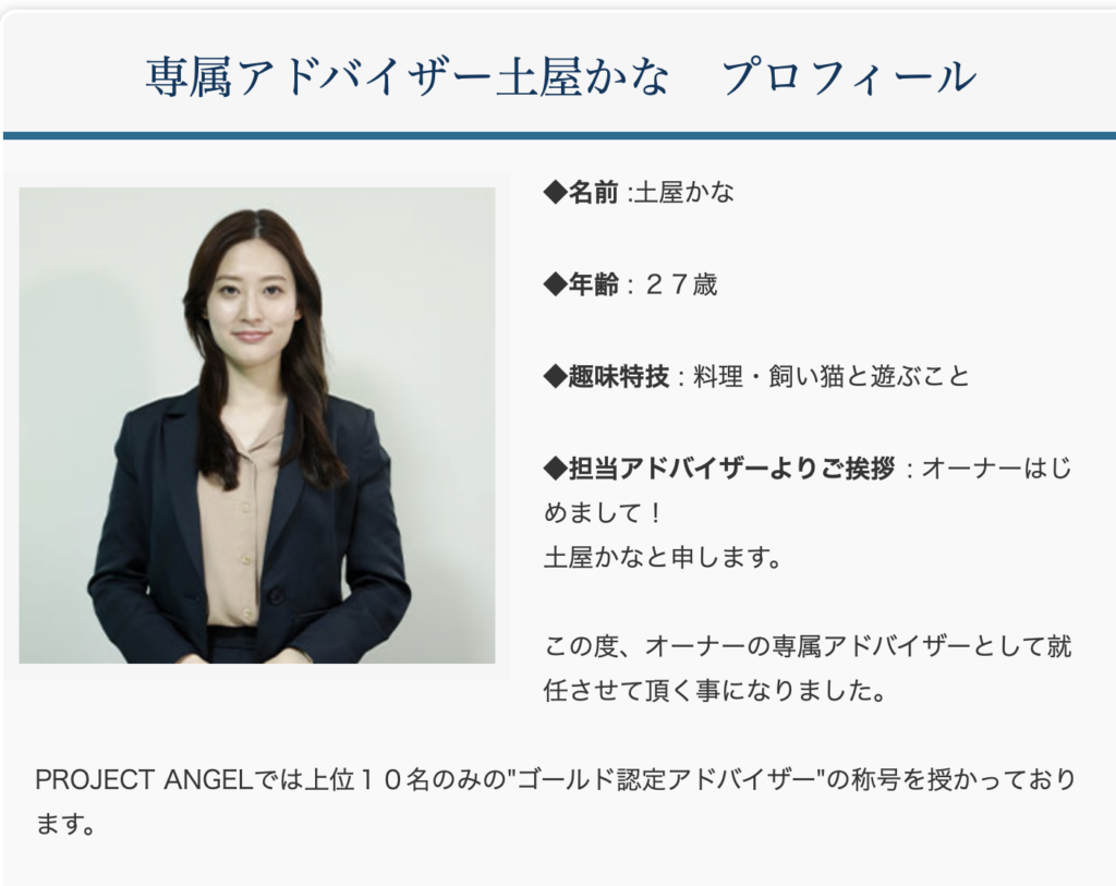 で、このエンジェルプロジェクトに参加すると専門アドバイザーがついてくるよう。