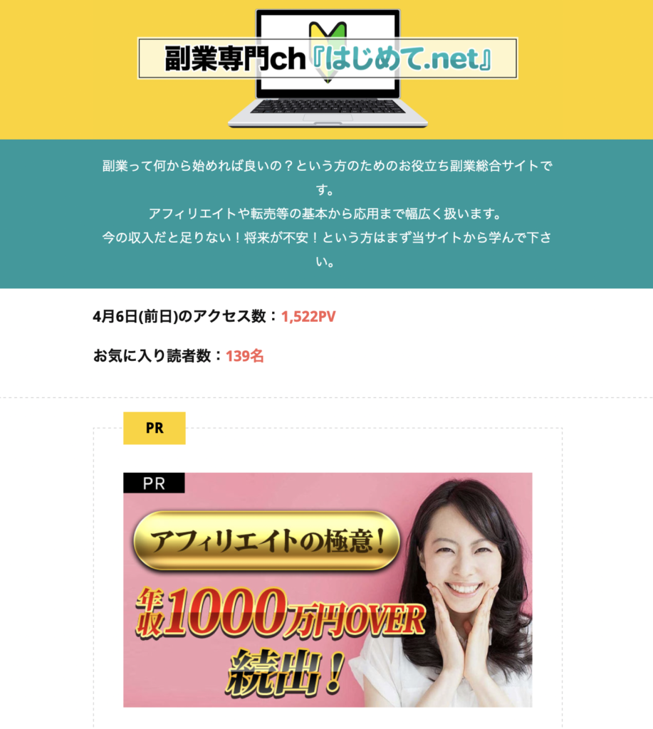 アフィリ広告も情報商材系のものだったので、きちんと戦略立ててやらないとネット上の肥やしになって終了の典型サイトです。
