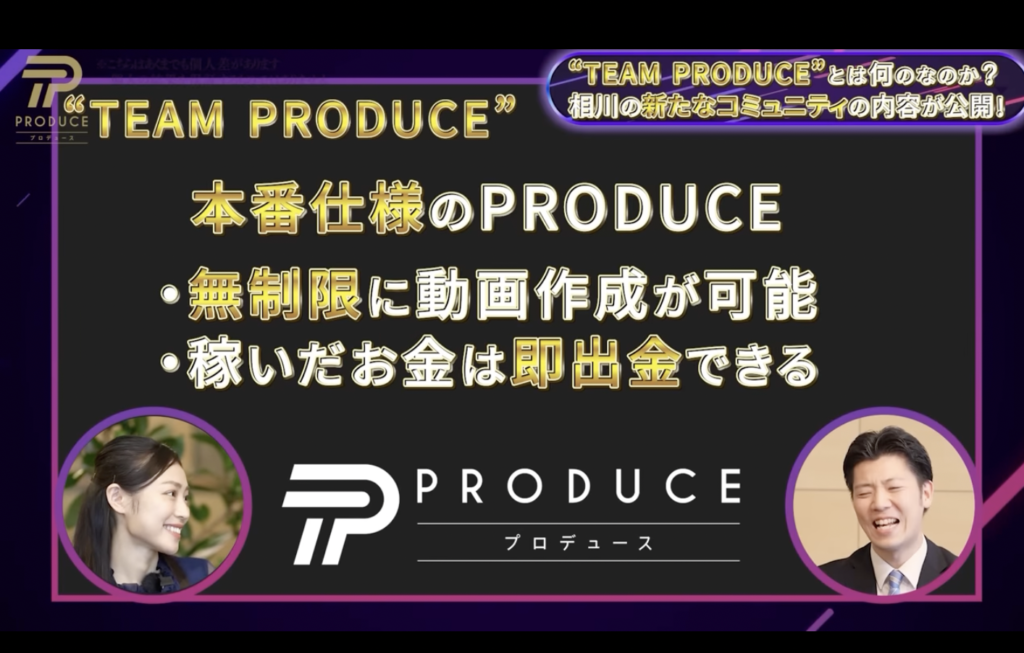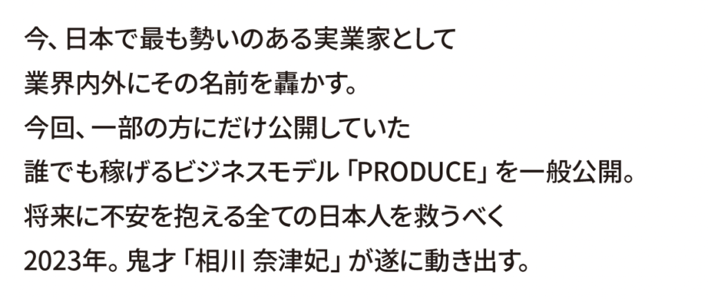 で、今回はこのPRODUCEというツールを使って月収1000万稼ぐ方法の紹介から始まります。