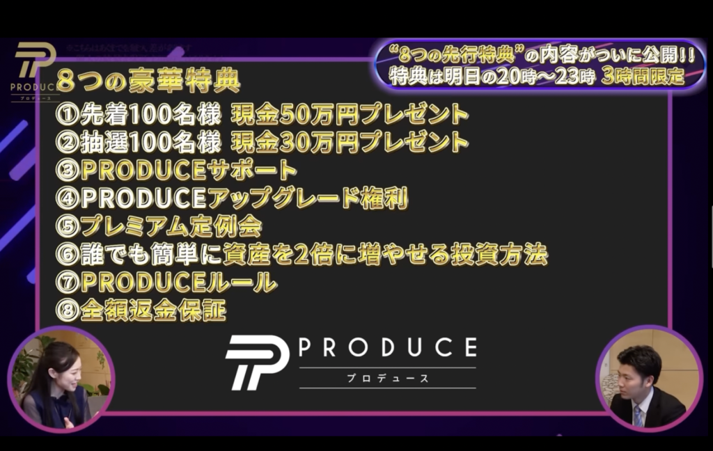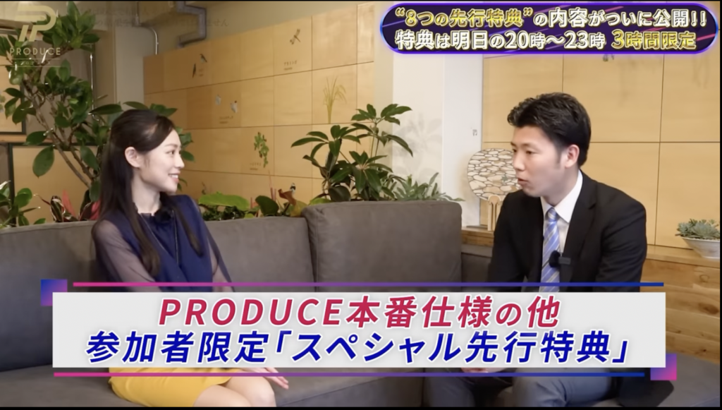 2人ともPRODUCEを使う前はお金に苦労していたけど、PRODUCEを使い始めてからお金に苦労しなくなったと定番の台本。